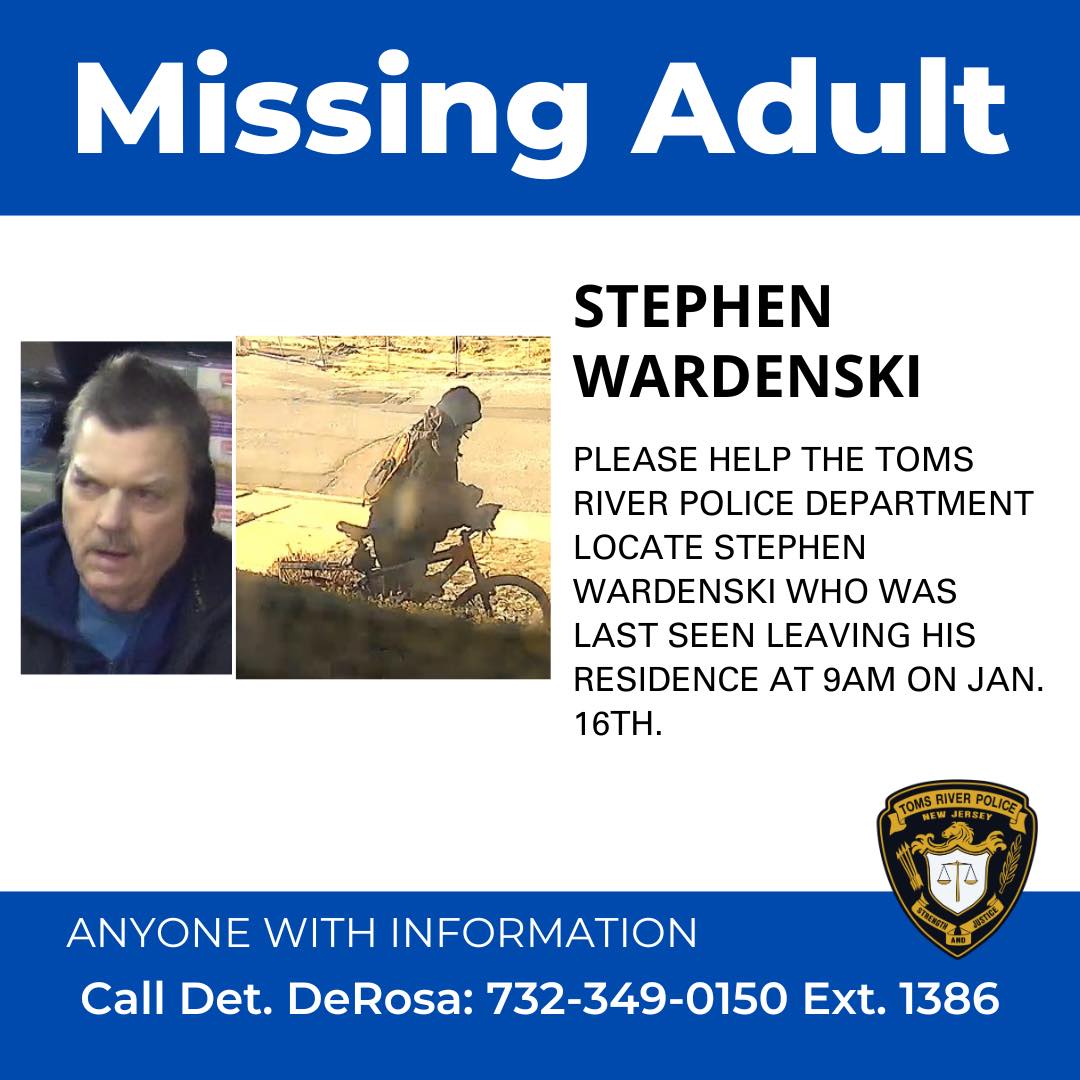 According to Toms River Police Department, they are seeking the publics help in finding 64 year-old Stephen Wardenski. He was last seen on January 16th around 9am.