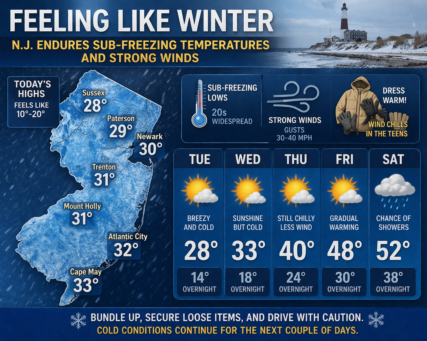 Feeling Like Winter: N.J. Endures Sub-Freezing Temperatures and Strong Winds