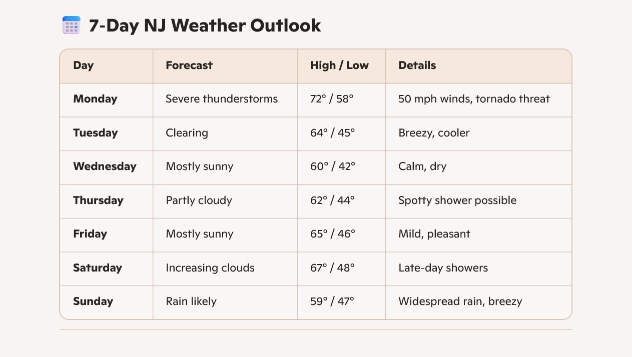 📅 7‑Day NJ Weather Outlook