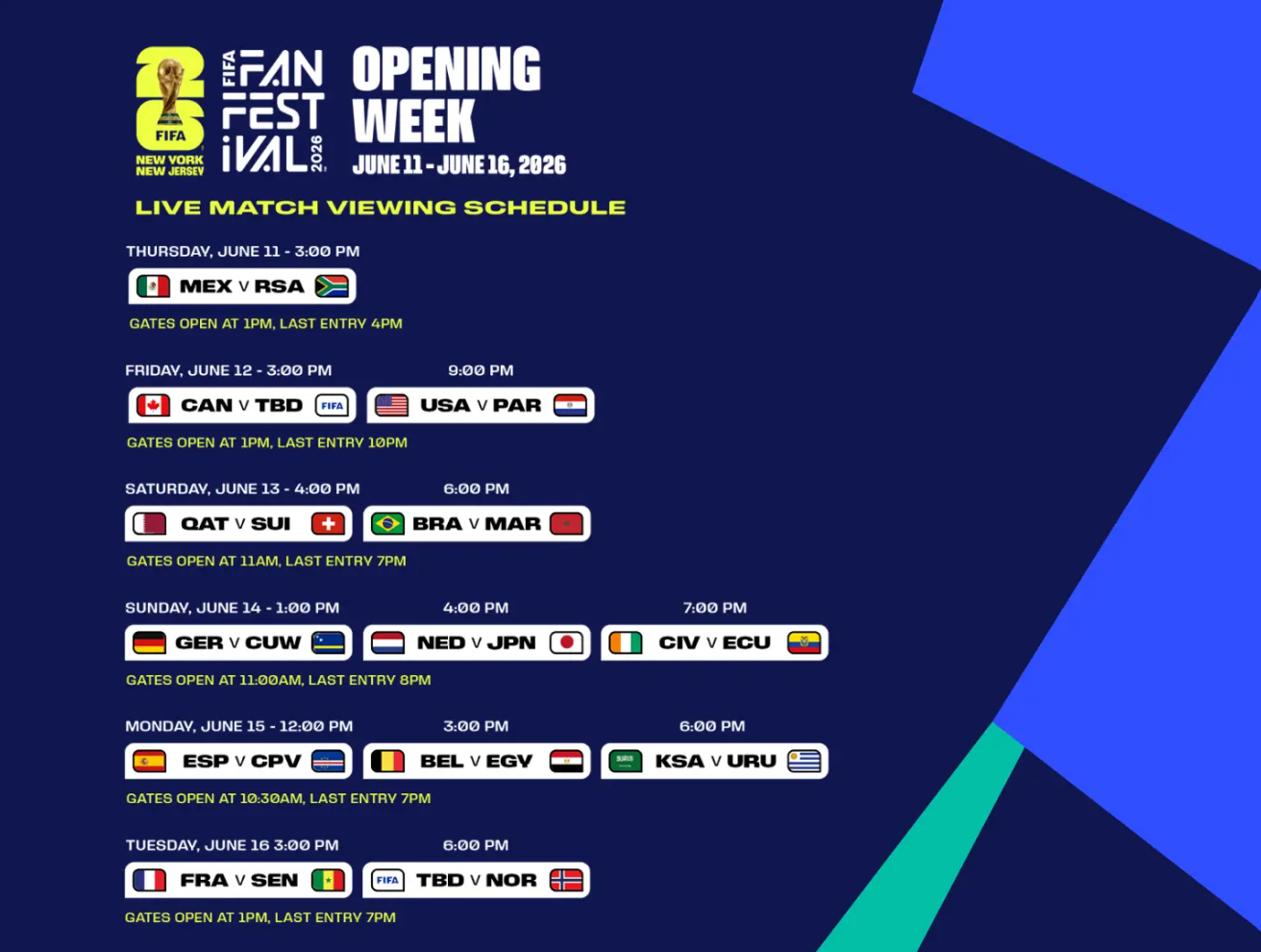 For the duration of the tournament, fans can experience live match screenings, headline music performances, celebrity appearances, family-friendly programming, and interactive football experiences—all celebrating the world’s game with the vibrant flavor, diversity, and energy that define NYNJ.