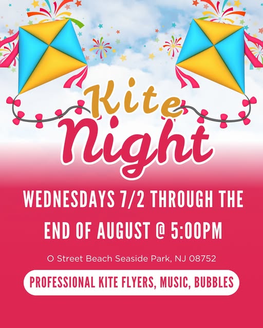 Join Seaside Park for an evening of color, wind, and wonder as kites fill the sky over beautiful Seaside Park!