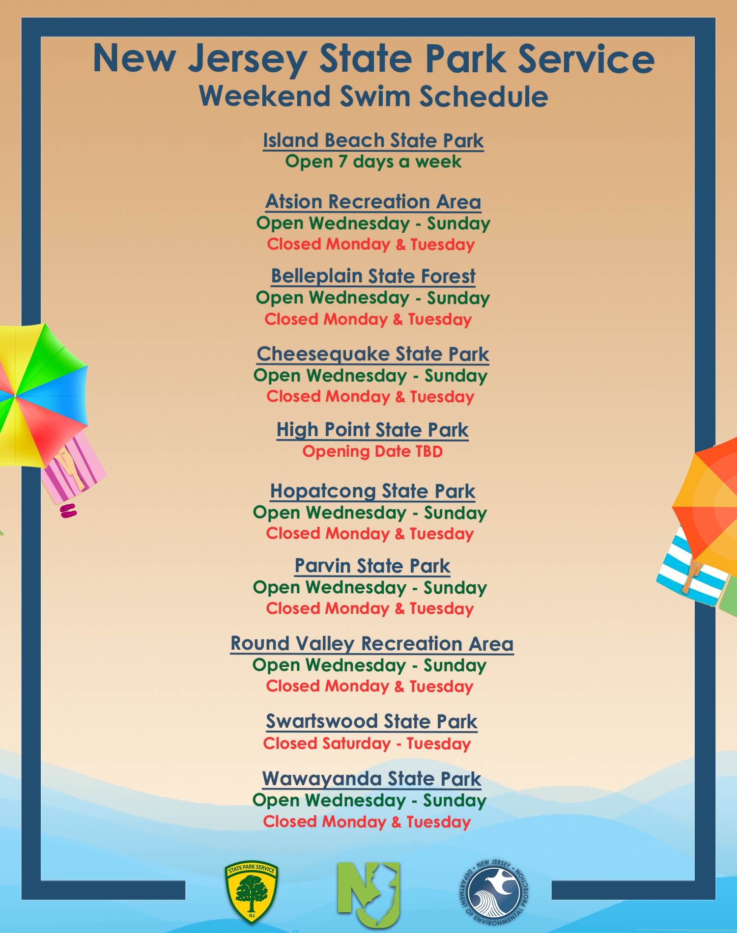 Explore New Jersey's Premier Swimming Locations and Schedules